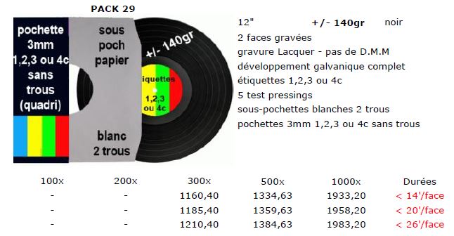 Vous avez déjà un pack vinyle 12″ pour 300 exemplaires à partir de 1419.90 euros hors taxe et hors transport